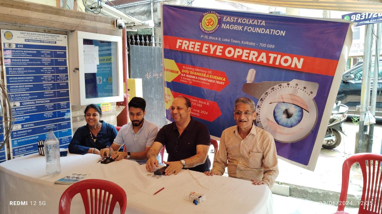 ईस्ट कोलकाता नागरिक फ़ाउंडेशन द्वारा दिनांक 23.06.2024 को शनिवार सुबह 10 बजे से निःशुल्क नेत्र ऑपरेशन शिविर का आयोजन अपने नेत्र चिकित्सालय मैं किया गया , जिसमें 62 ज़रूरतमंद लोगों के आँखो की रोशनी को स्वस्थ किया गया जो की स्थानीय निवासी एवम् कोलकाता के सुदुर इलाक़े Madhyamgram & Deganga आदि से आये थे।